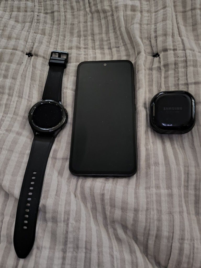 Mint condition unlocked galaxy a55, Samsung live earbuds and galaxy classic watch