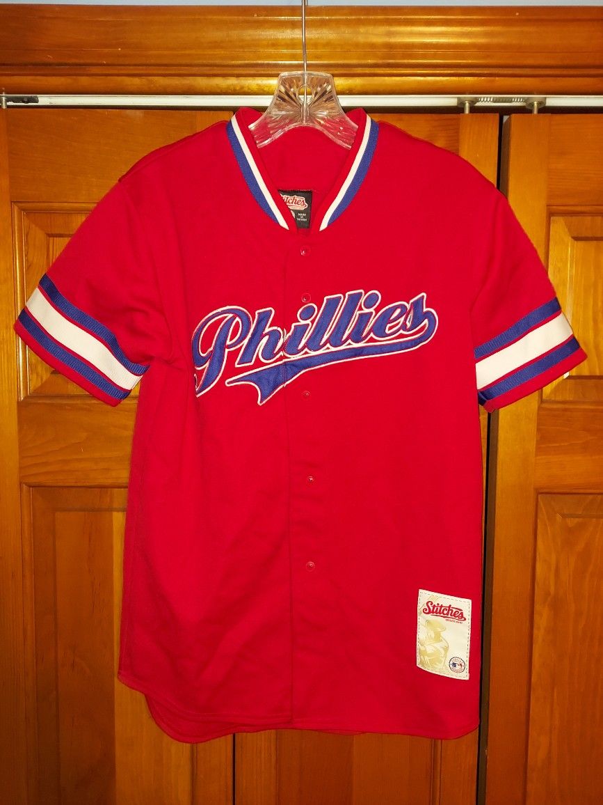 LARGE 18 INCHES PIT TO PIT PHILADELPHIA PHILLIES JERSEY BY STITCHES WITH SEWN ON LETTERS AND LOGO