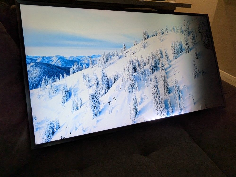 This TV is from our home. Please note that the far right edge probably has some damaged pixels, so that edge of the screen displays as black or very dark gray. This was caused by me gripping that edge when moving the TV on its swivel mount (not included in price). Manufactured date is July 2016. In downtown Riverside.