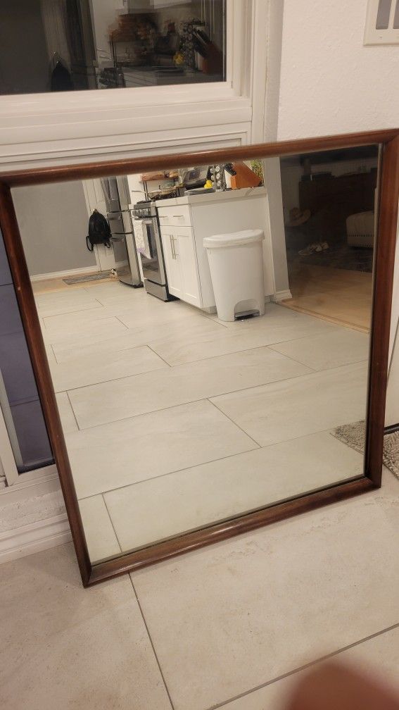 Awesome Mid Century Walnut Framed Mirror in excellent vintage condition measures 38-40" tall ready to hang