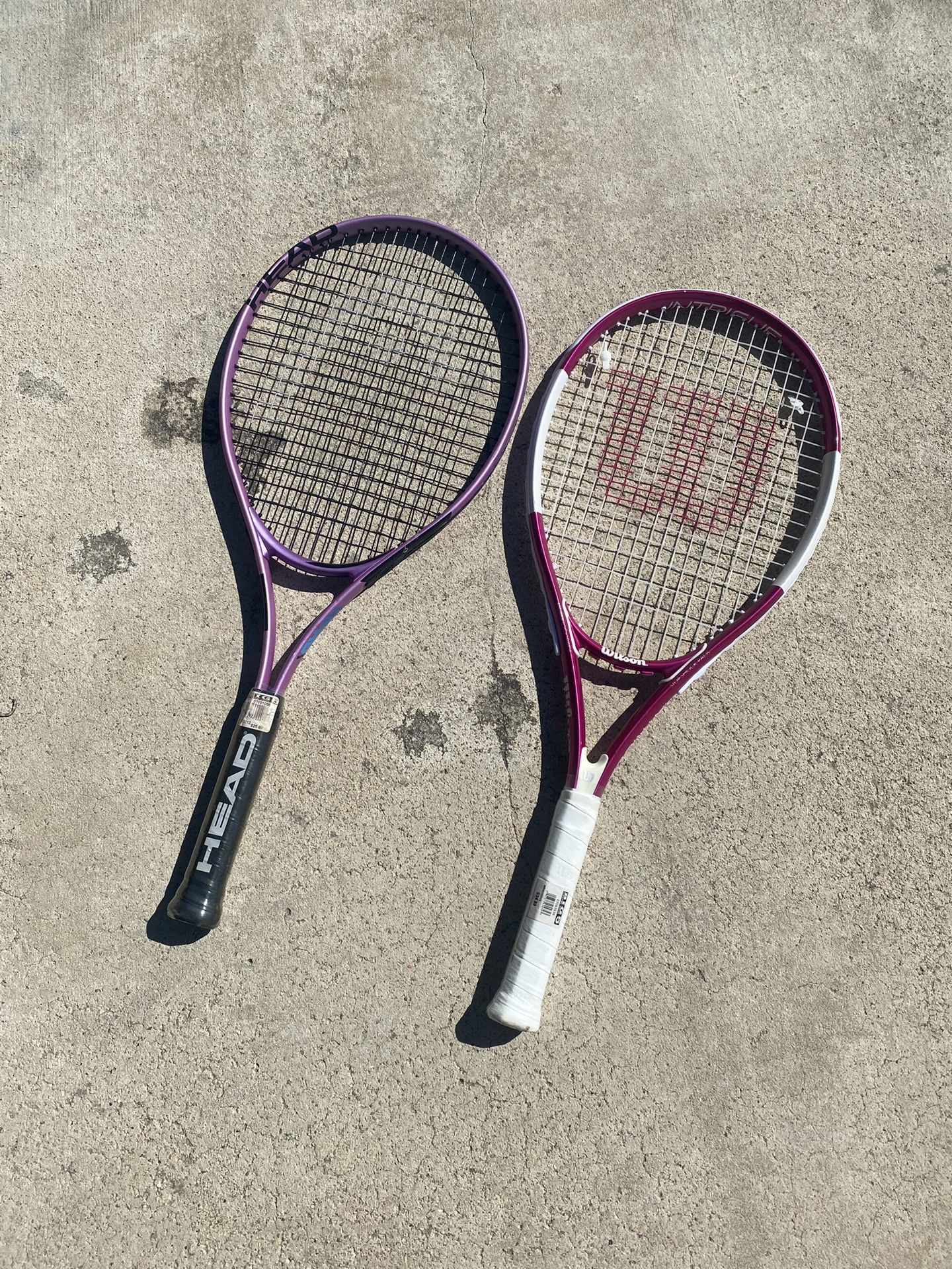 I have 2x Tennis Rackets one is Wilson brand and the other is HEAD brand, both brand new never used still with the price tag on them although the Wilson branded one does show slight signs of chipping in the paint otherwise in new condition, second racket is practically untouched Both size 4-1/4" Wilson: $34.99 HEAD: $26.99 Asking $35 for both Located in Mesa but go to Avondale often, lmk if interested Tags: tennis, racket, ball, tennisball, court, sports, Wilson, fitness, sport