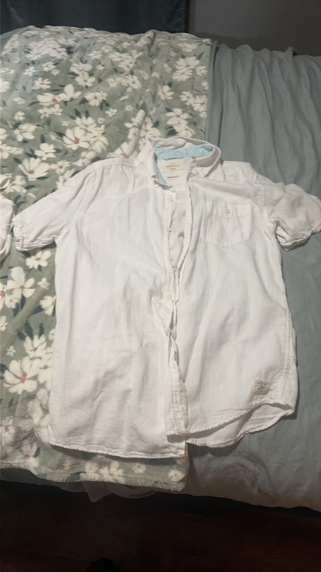 Men’s Vintage White Short Sleeve Button Up Size Small
