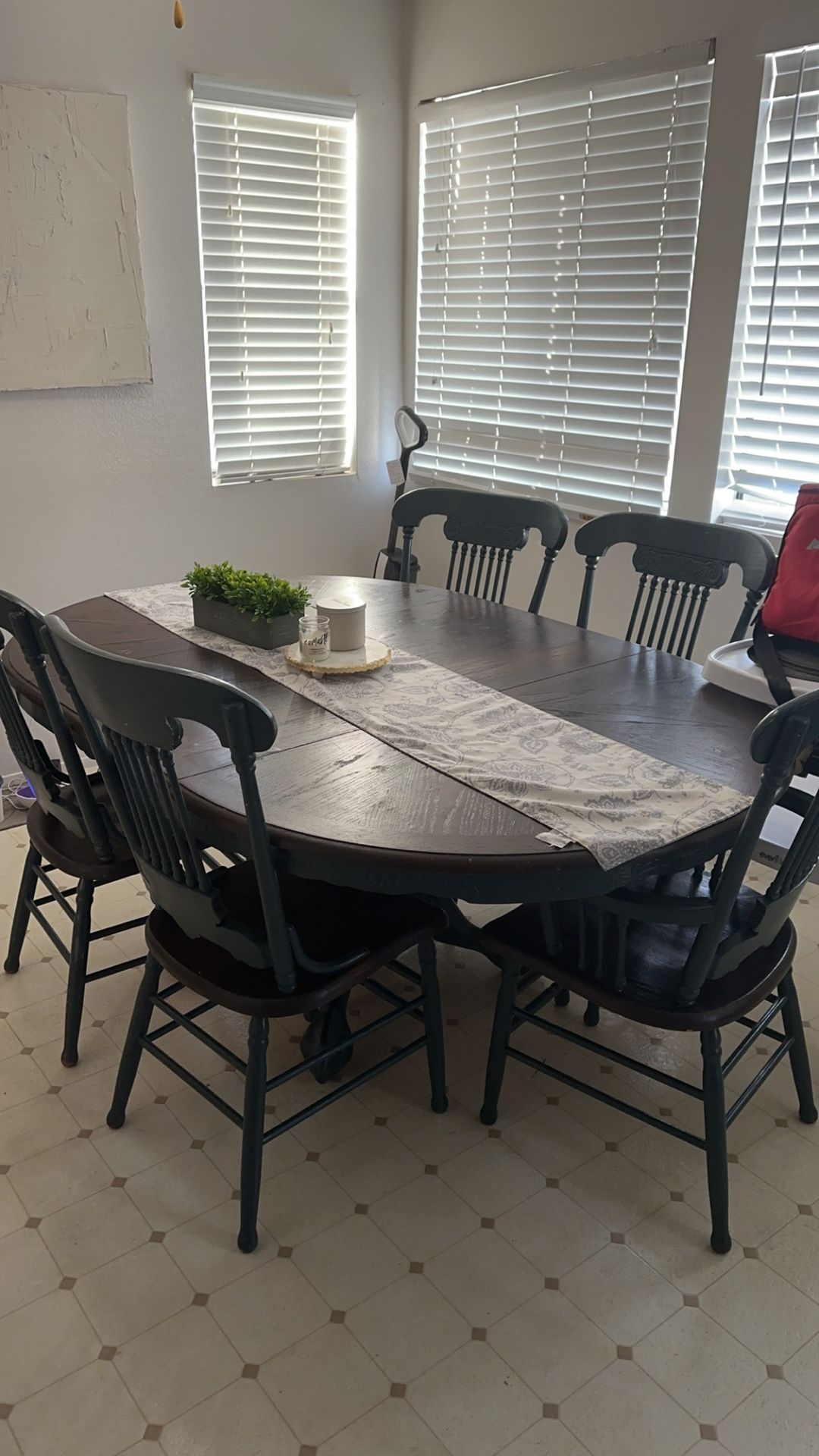 500 obo Has some wear and tear but is very sturdy 5 chairs , it does have the extra piece in right now to extend and sit more people (it is removable ) Need gone asap