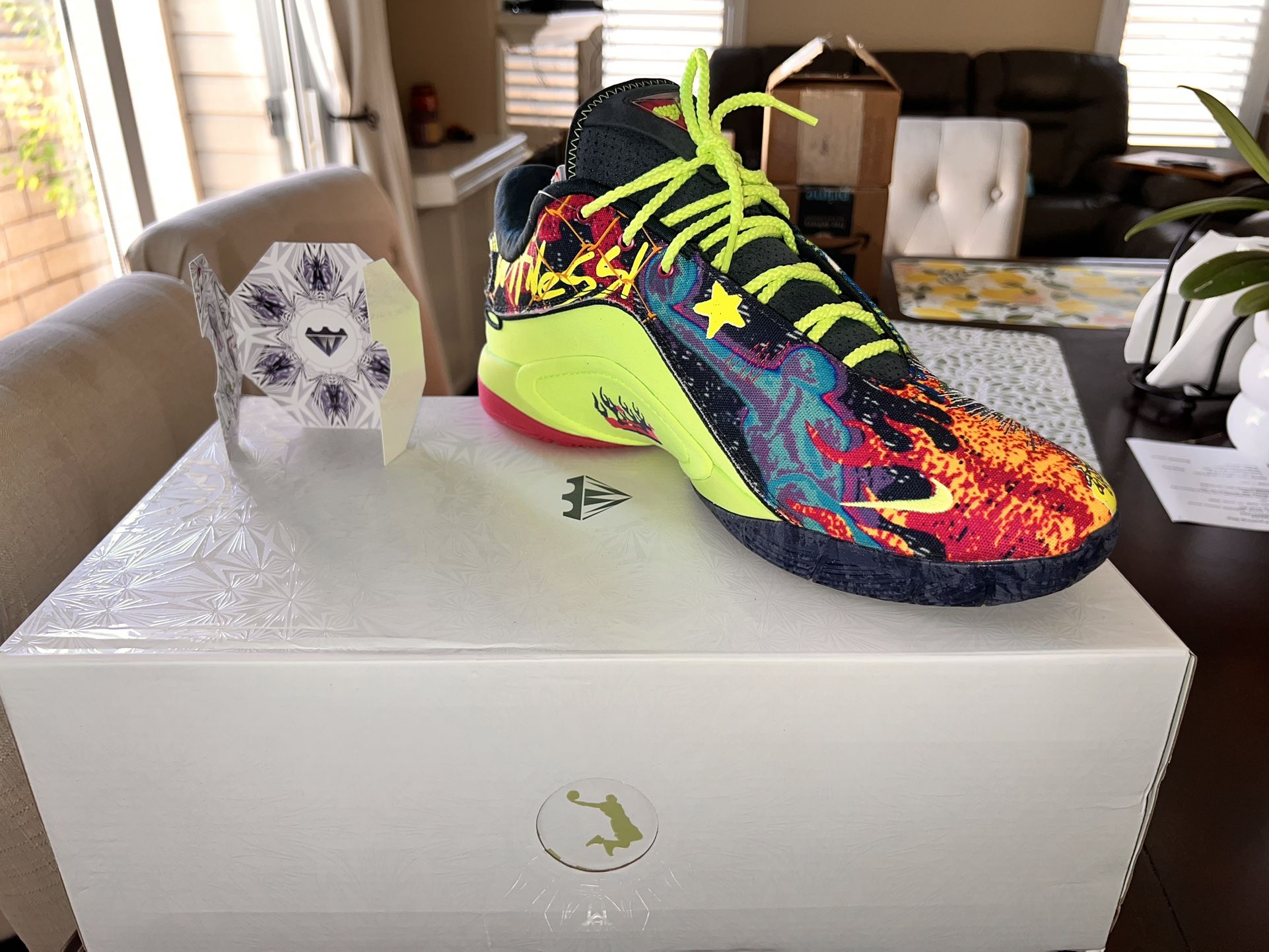 LeBron XXII BW Blustery/Fireberry-Ghost Green Blustery/Baie De Feu SZ: 13M / 14.5W Brand new basketball shoes never worn for sale. Comes with special extra laces in ziploc attached to shoes. Limited edition Bryce James version. OBO$