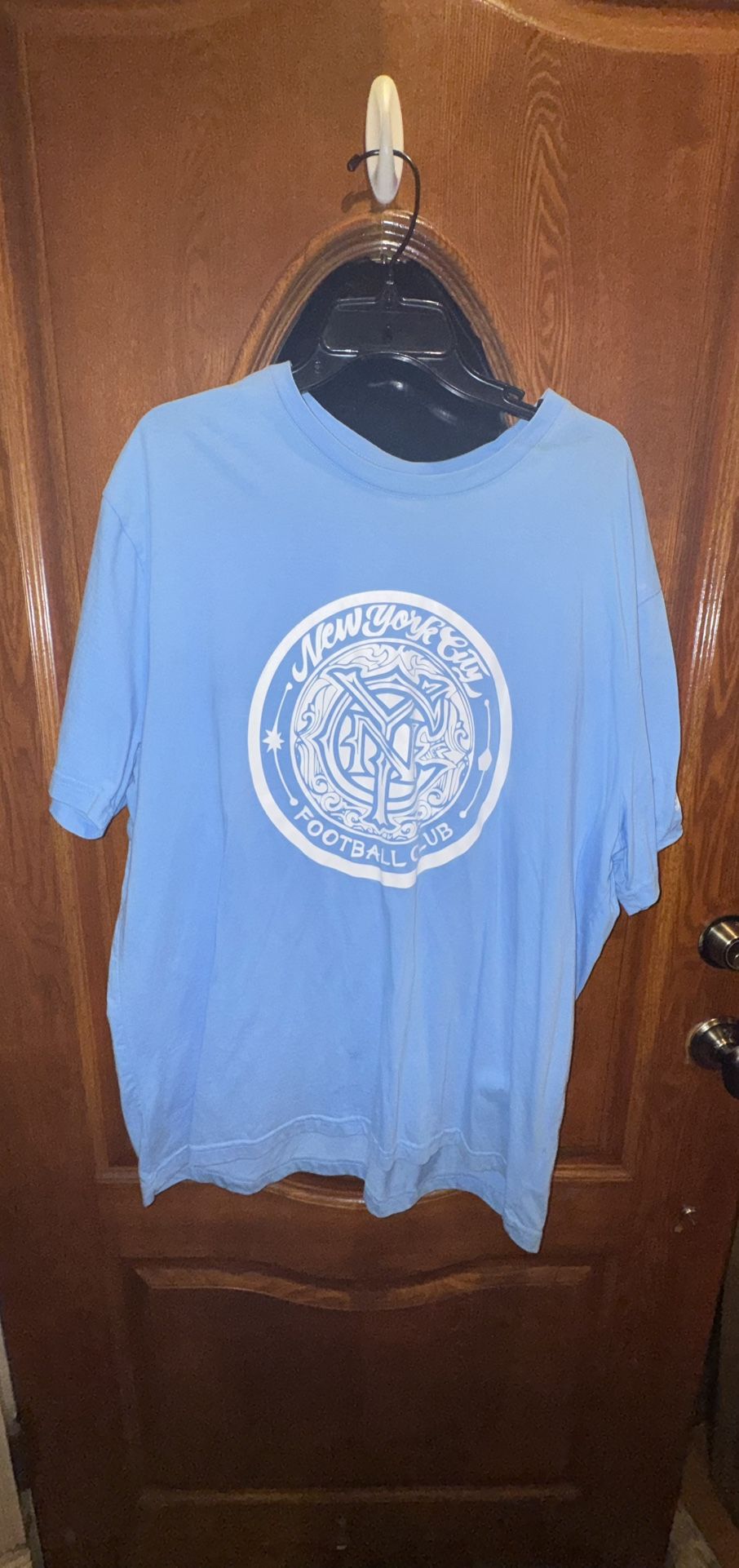 OVO × Mister Cartoon New York City FC Sky blue and white cotton graphic T-Shirt