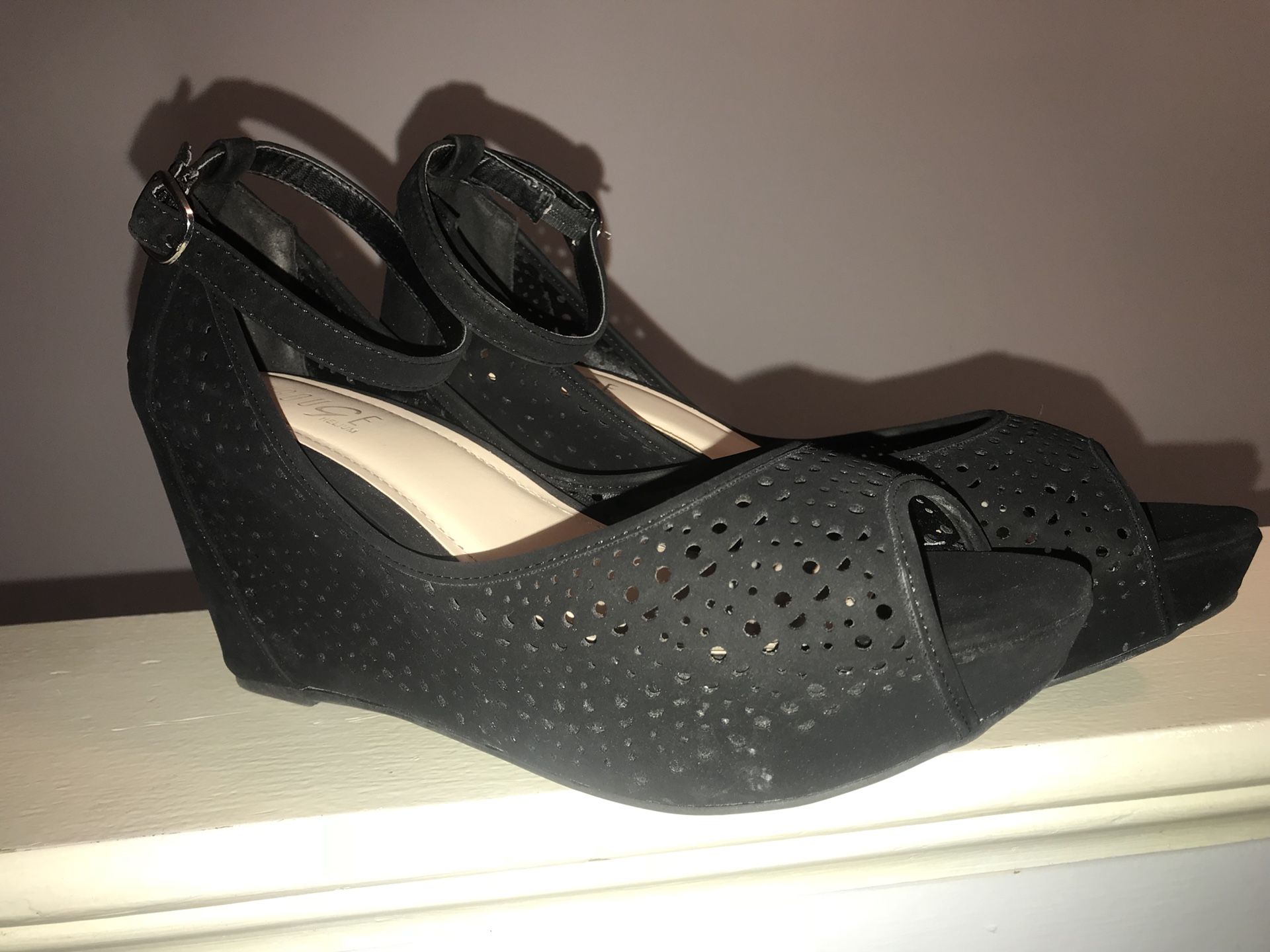 Nice black wedge heels. Very comfortable. Can fit a wide foot. Worn twice. Excellent condition.