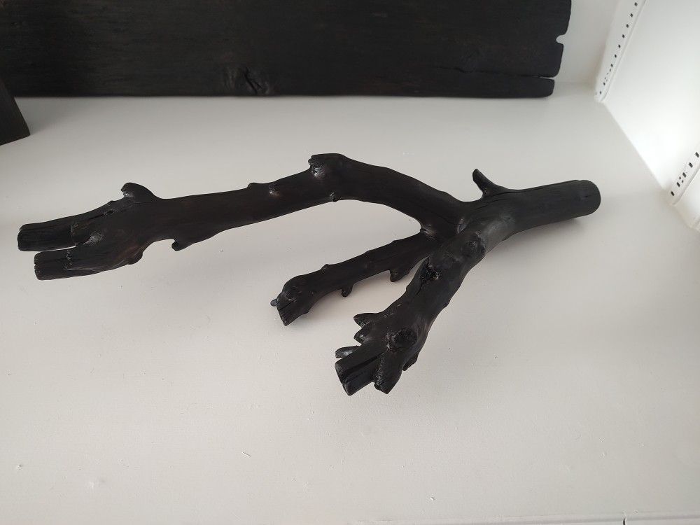 Burnt wood that's been sealed. Very cool and different! I would sell each piece individually just ask me about price and we can negotiate.
