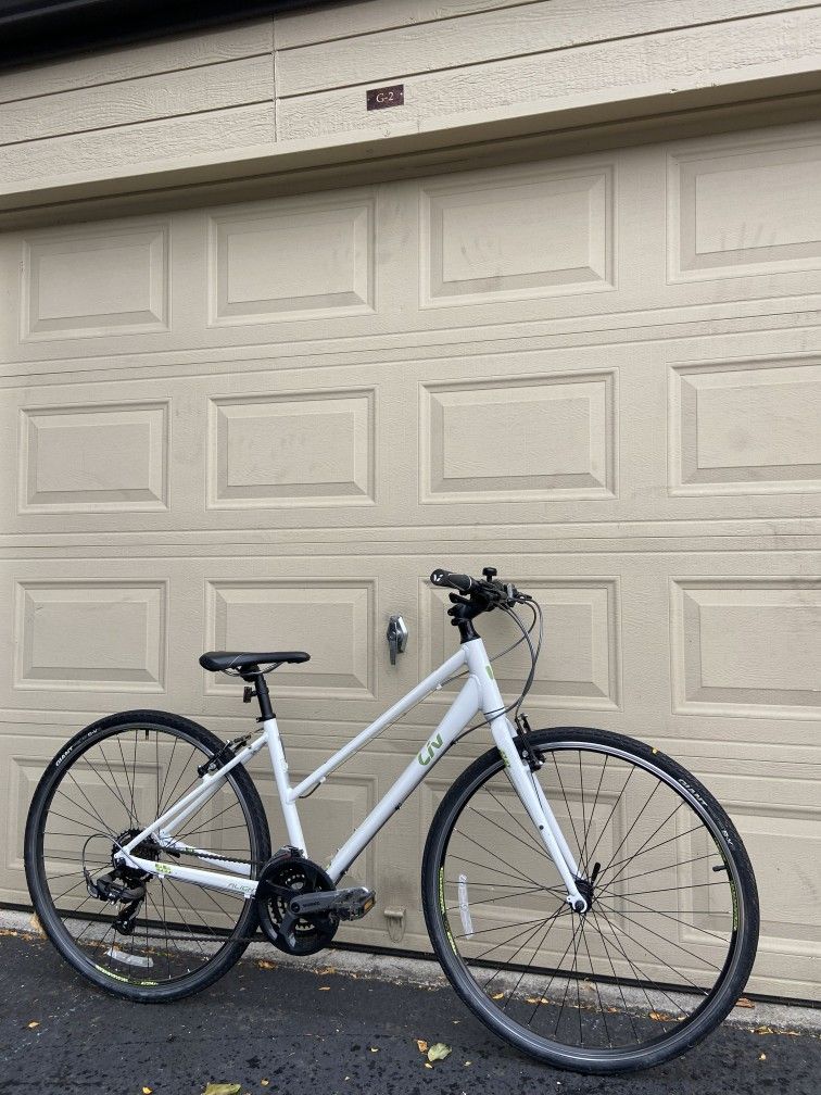 A women’s-specific hybrid bike built with a lightweight aluminum frame, upright geometry, and flat handlebars for a comfortable and confident ride.(22) • Frame: Aluminum, Small size (best for riders 5’1” – 5’7”) • Wheels: 700c with quick release • Drivetrain: Shimano Tourney 21-speed (3×7) • Brakes: Linear-pull rim brakes • Women’s-specific design for better fit and comfort • Comfortable upright riding position – great for commuting, fitness, or casual rides Lightweight, versatile, and easy to ride – perfect for city commutes, fitness, or weekend cruising.