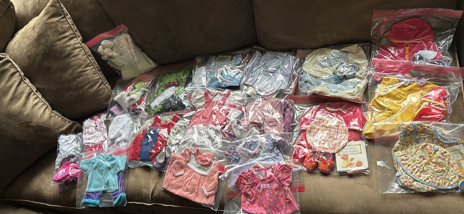 All outfits (with the exception of sleepers) include orginal accessories. Shoes, tights/socks, hats etc. I’d prefer to sell as a whole lot but am willing to negotiate at a resonable level. Each outfit sells from $30+ on ebay. I’d much rather put collection go to a collector and someone who will love it instead of reselling it. There’s 23 bags. More than happy to have you come out & look at everything. I do have individual pictures of each outfit as well , they just don’t all fit in the listing :) Pickup in Woodinville