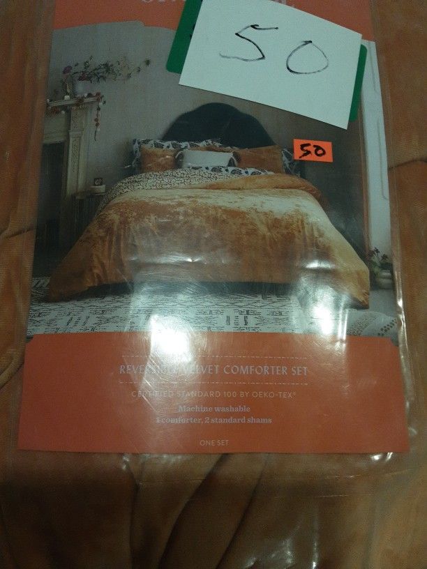 Reversible velvet Comforter Set 1 Comforter 2 standard shams