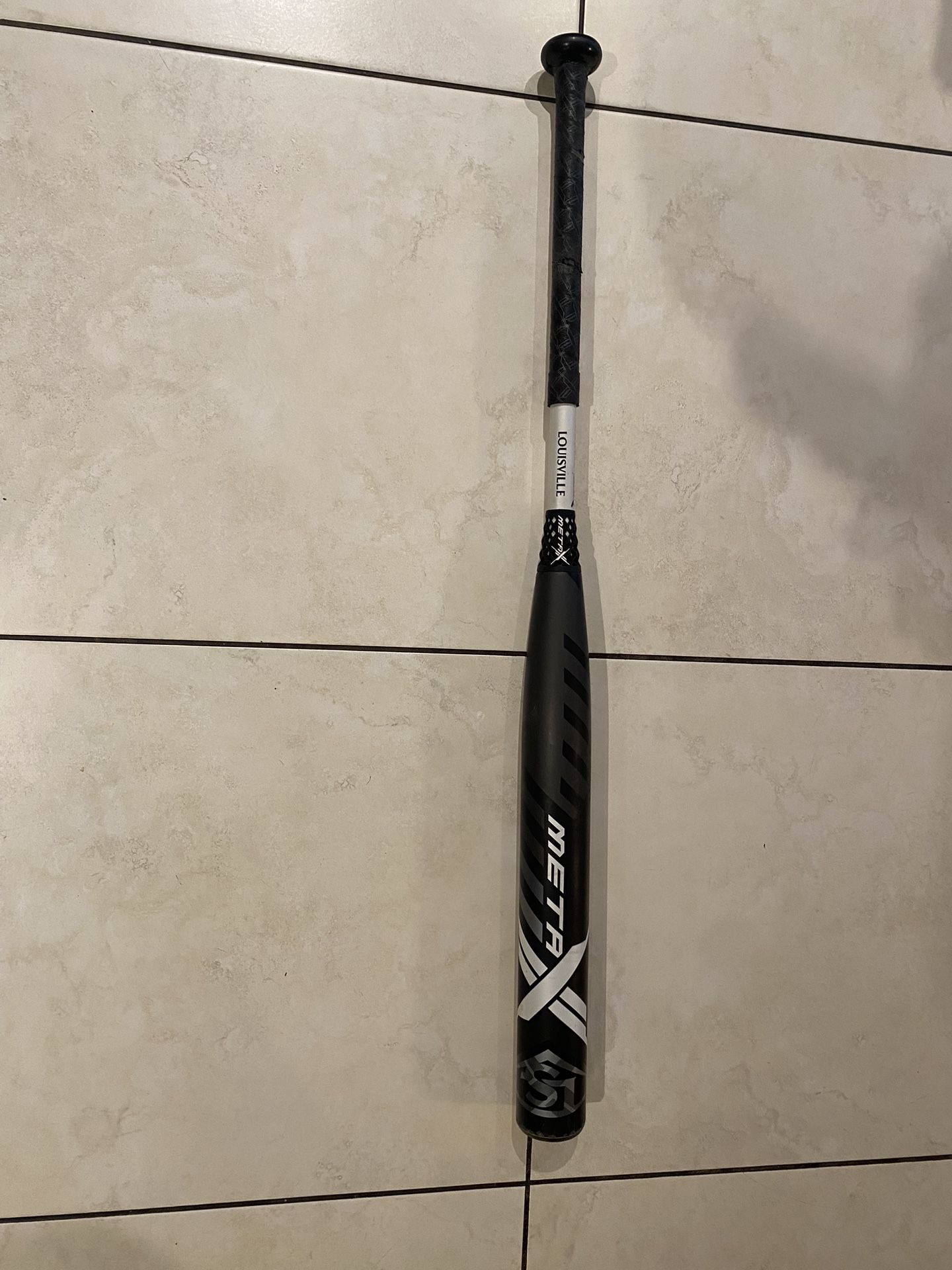 This is a barely used Louisville slugger Meta. 34 in. -9. My daughter switched teams and was not able to use this brand on her new team. So it looks new only used a few times.