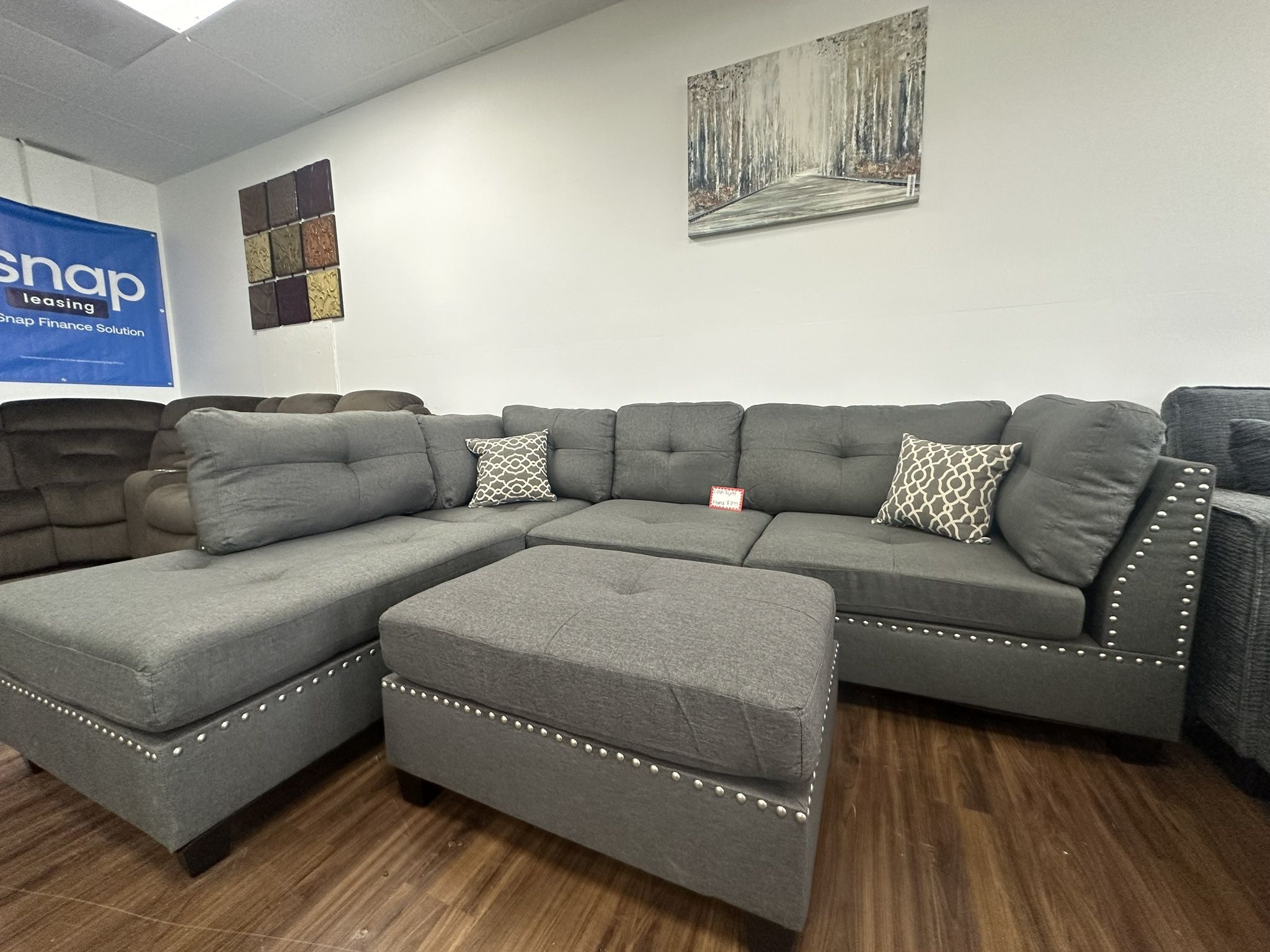 π₯ Big Comfort. Small Price. ONLY $699! π₯ Dark coffee 2-piece sectional with ottoman included! Financing available through SNAP, Progressive Leasing & Acima π Delivery anywhere π Family-owned business π 559-540-6316 β Donβt miss out!
