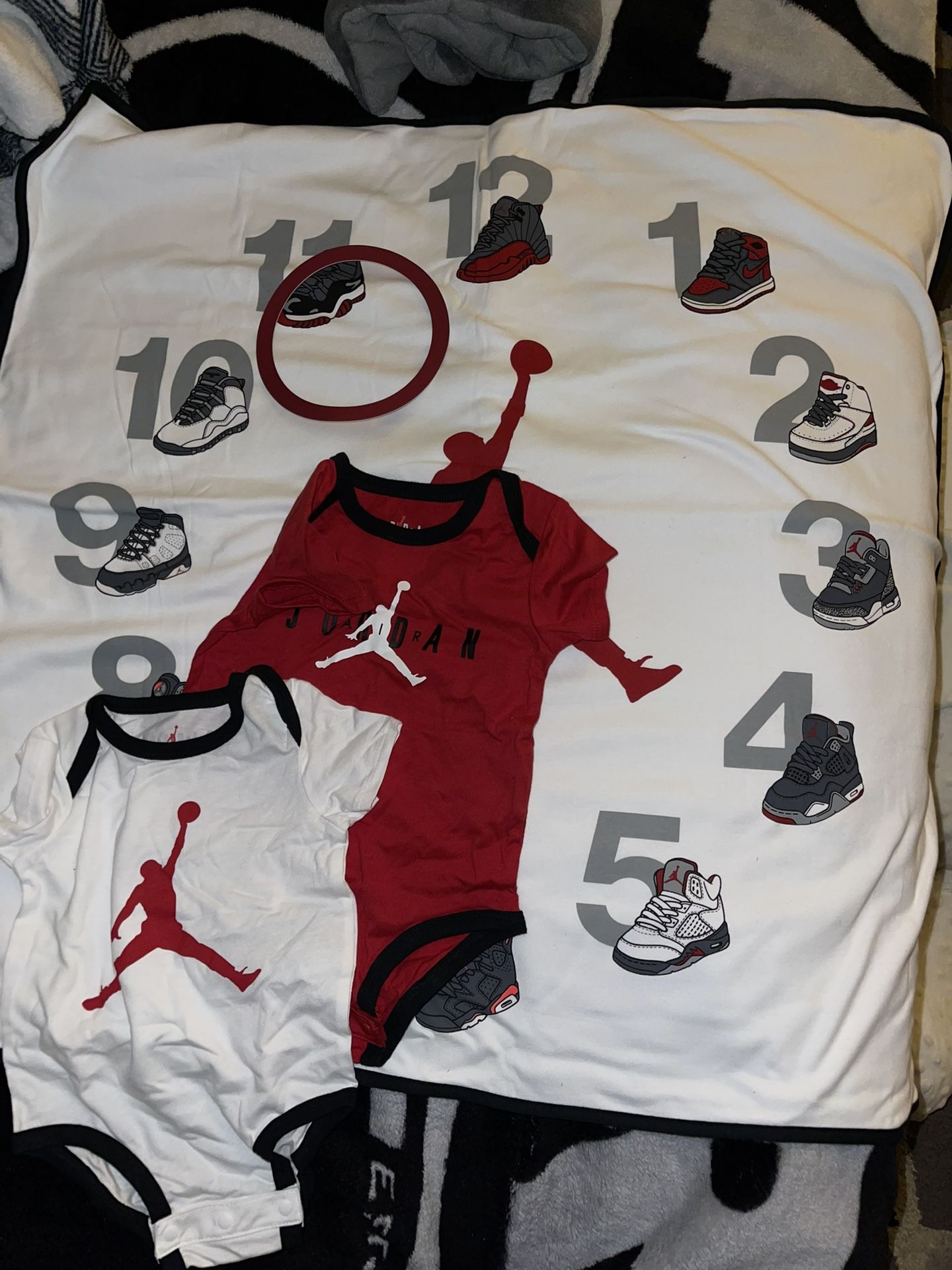 New never used. comes with a 0-6 month outfit and 6-12 month outfit plus blanket