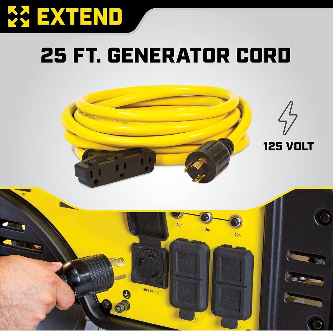 25 ft Generator Extension Cord – Heavy Duty, 125V