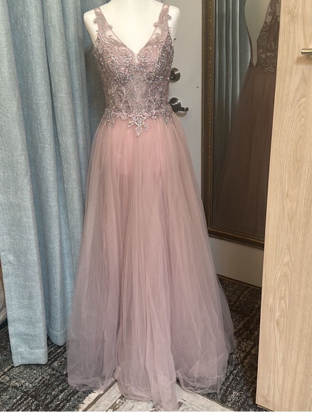 Lovely Dancing Queen USA Flowing ethereal prom dress size XS. Delicate lace bodice and light lilac tulle long skirt.