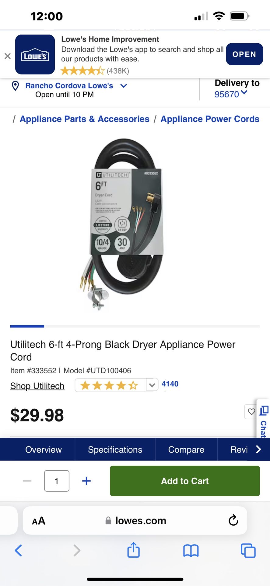 I have a new 6 ft dryer code with 4 tongs. The machine had one so did not use. Lost receipt