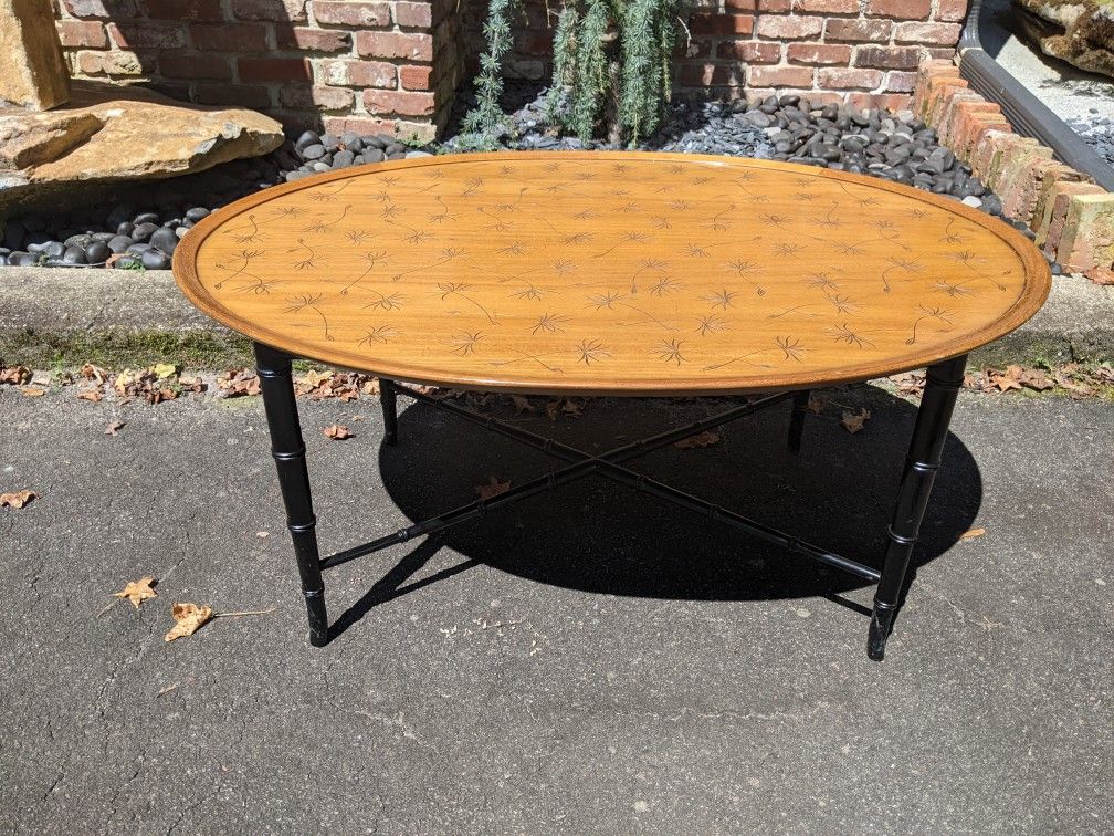 Hollywood Regency Kittinger Thistle Coffee Table with Faux Bamboo Legs