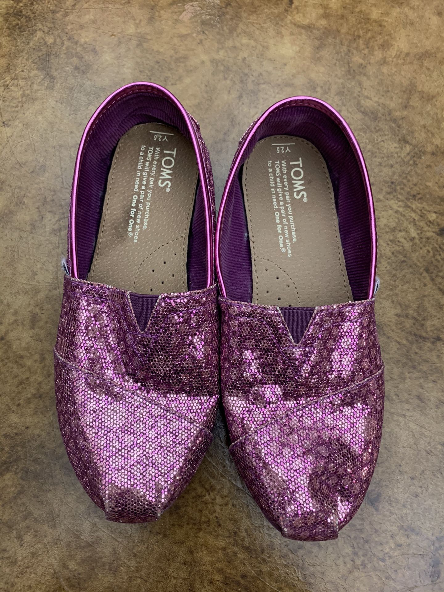 Toms girls purple sparkling shoes, size Y2.5. Condition: Like new Pick up in Highland Park.