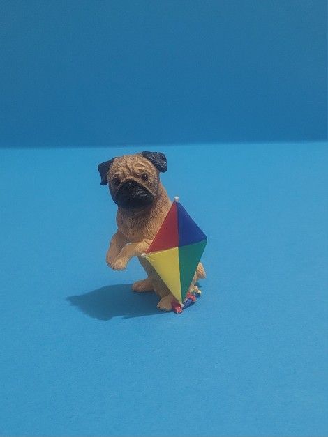 Danbury Mint Pug Miniature Dog Figure Collection, w/ kite by its Side.