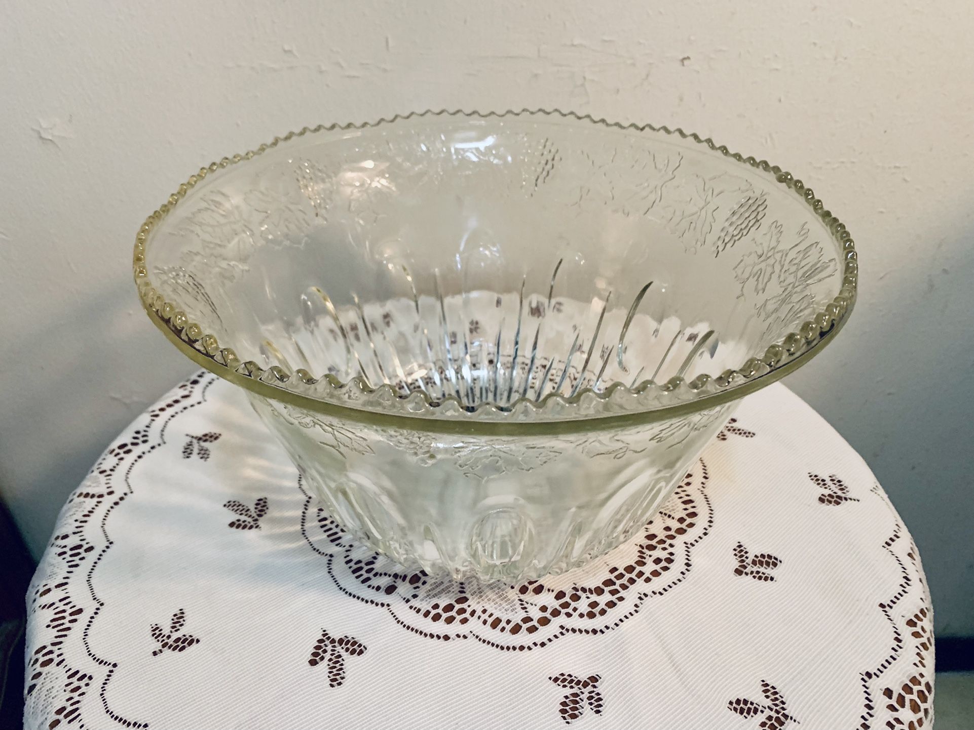 Giant Vintage Crystal Glass Punch Bowl