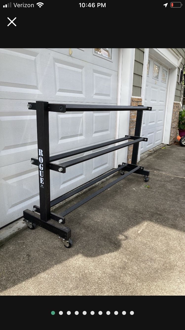 Rogue Fitness brand. Built like a tank. Huge storage unit. Over 70” long. Stores everything neatly and off your gym floors. On caster wheels for easy portability. Great way to fully organize your gym. Retails for over $650 shipped. Make me an offer. Weights, dumbbells, squat rack, weight tree storage, adjustable bench, exercise, workout, organize, CrossFit, training