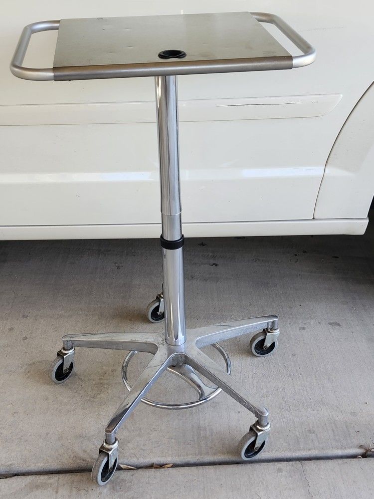 For sale a heavy dutty stainless steel laptop cart on wheels with adjustable height depress foot pedal in good working condition this laptop adjustable card online they no cheap take a look around $ 150 obo cash only no trade or deliver thanks