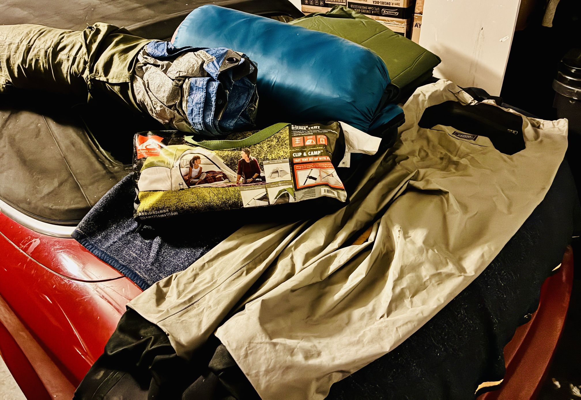 Fisherman’s Camping Gear Lot - Tent, Sleeping Beg, Pad, Wader’s Pants & Cover