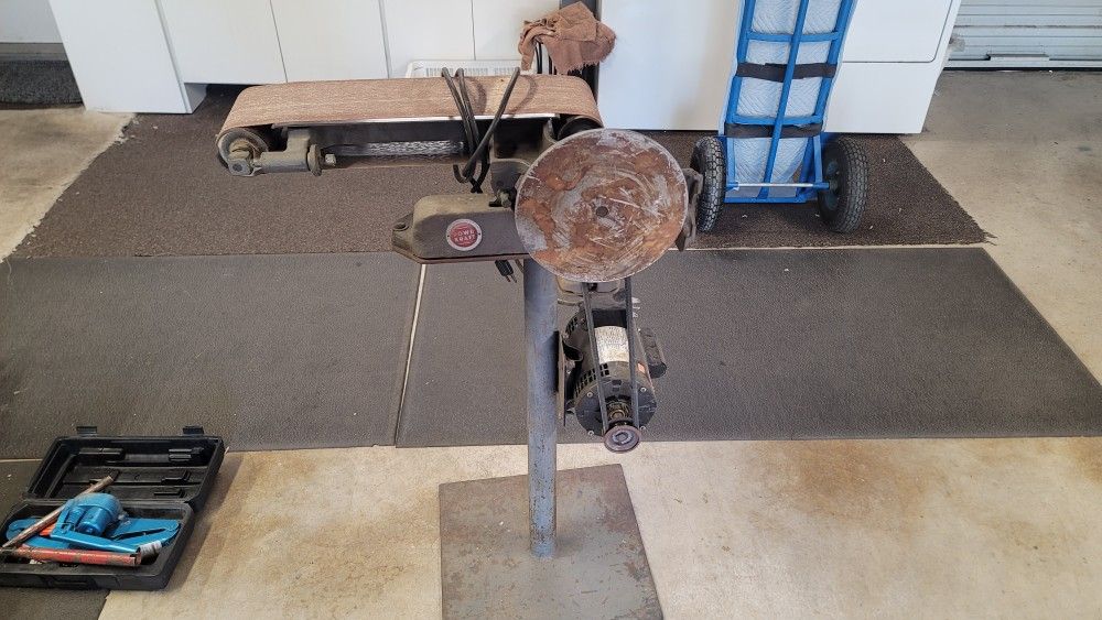 Specs 🔥Power kraft table top belt sander plus stand 🔥48"x6" belt 🔥9" disk 🔥1hp 🔥Great working piece of equipment for any shop 🔥new ones of similar caliber would cost 5 to 7 hundred new and the cheapest harbor freight ones new are 280 plus tax with no stand so I'm going to post this at $135 obo. 🔥buy with ease of mind and test before you buy