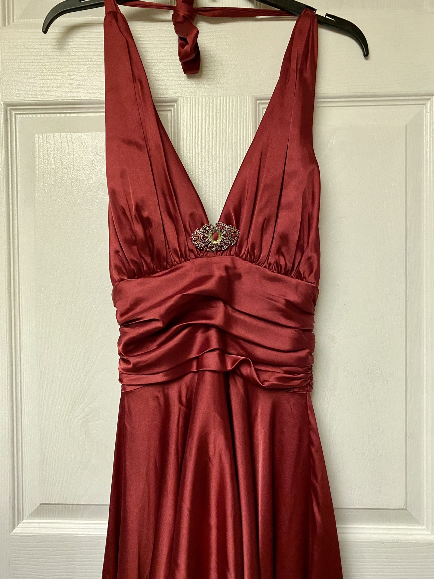 This is a beautiful red lined size Small Prom or Formal dress with a broach pinned on that can come off if you’d rather. Probably like a size 5. REASONABLE OFFERS ACCEPTED Check out all my other posts I have more prom in formal dresses for weddings etc. Located in Inverness but I can meet in BROOKSVILLE or other nearby areas possibly too.
