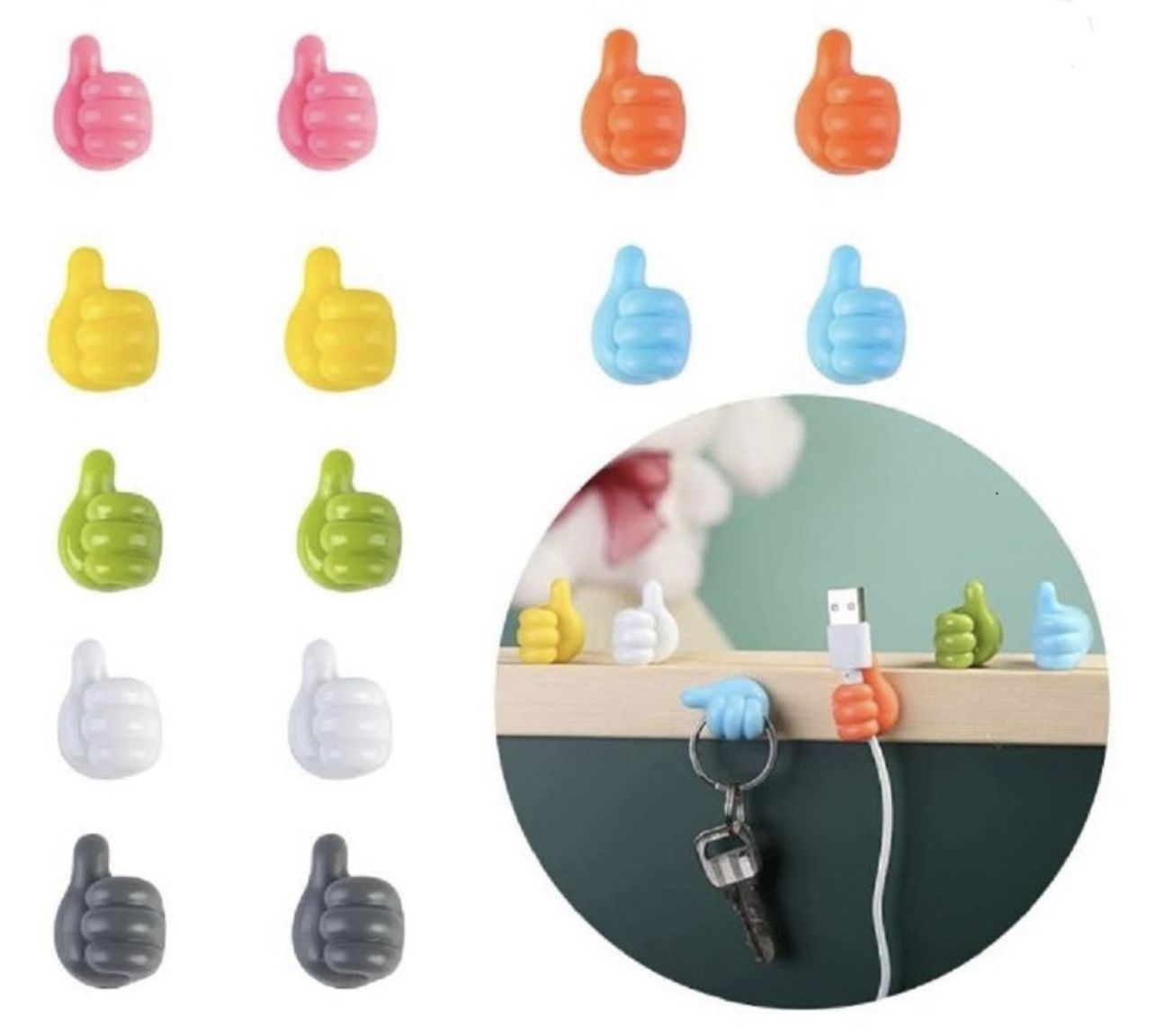 24 Pcs Silicone Thumb Wall Hooks Creative Adhesive Thumb Cable Clip Key Hook Wall Hangers for Data Cable Earphone Belt hat Key Storage This silicone thumb wall hook is made of soft silicone material, safe and sturdy, reusable, wear-resistant, not easy to deform and fade, waterproof, anti-corrosion and rust, smooth surface, fine workmanship, resistance to daily scratches, small and light. You can hang the thumb cable clip key hook on the wall, behind the door, save space, Easy to use, can better "fix" items and not easy to fall off. This creative wall hooks for hanging has a fun thumb shape, simple and practical lines, suitable for your desktop, bathroom, room storage. While bringing you convenience, give you deep thumbs everywhere to encourage you. This utility silicone thumb hook can be as cable management clips, kitchen racks for small items, toothbrush holder in the bathroom , pen holder in office, classes holder in the car , plant flower clip etc. It is a must-have storage solution for the bathroom, kitchen, living room, or office. Made of high quality, the smooth corners will not hurt items. The hanging method is changeable as you wished. The hooks are a great way to make storage space. The mini self-adhesive thumb wall hook is not easy to deform and fade, with a smooth surface, fine workmanship, and resistance to daily scratches, it also ensures that you use them in wet conditions, which will support you for a long time.