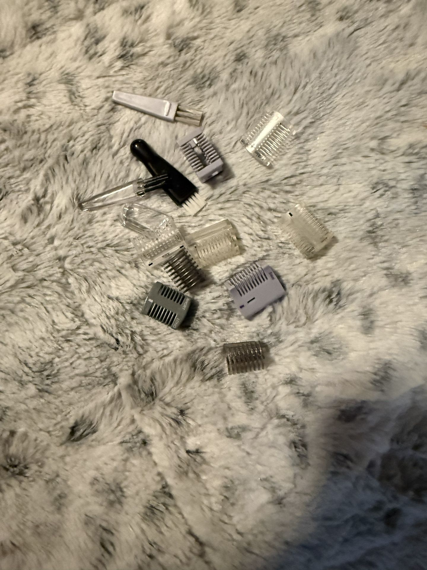 collection of grooming tool attachments and combs for a personal hair trimmer