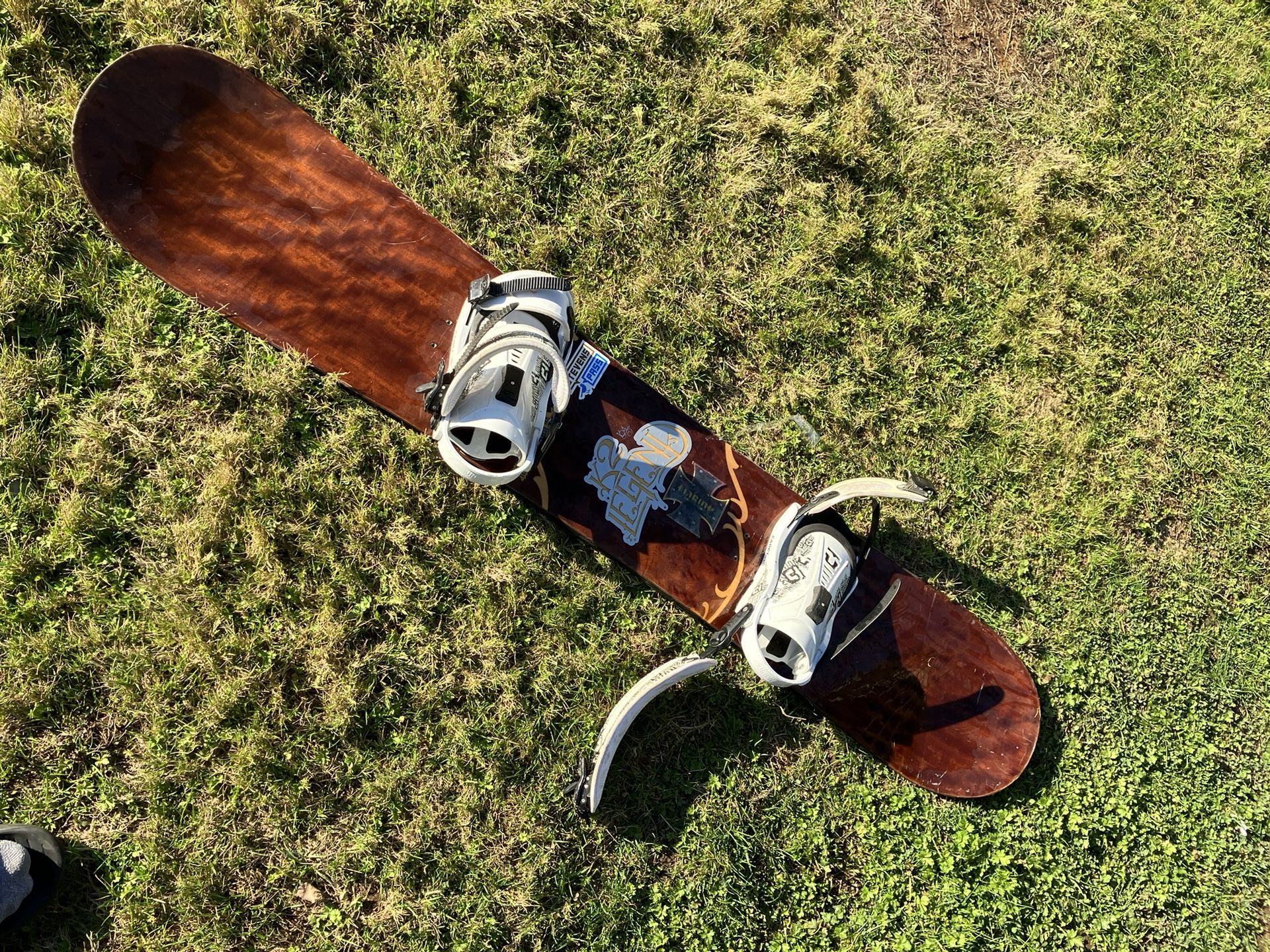 Haven’t rode much in the last 15 years since school. Got this board in high school and rode maybe 5 times. The clear film is starting to pull on the top end besides that no cracks throughout the board. Bought the bindings new as well so less the 10 rides on them as well.