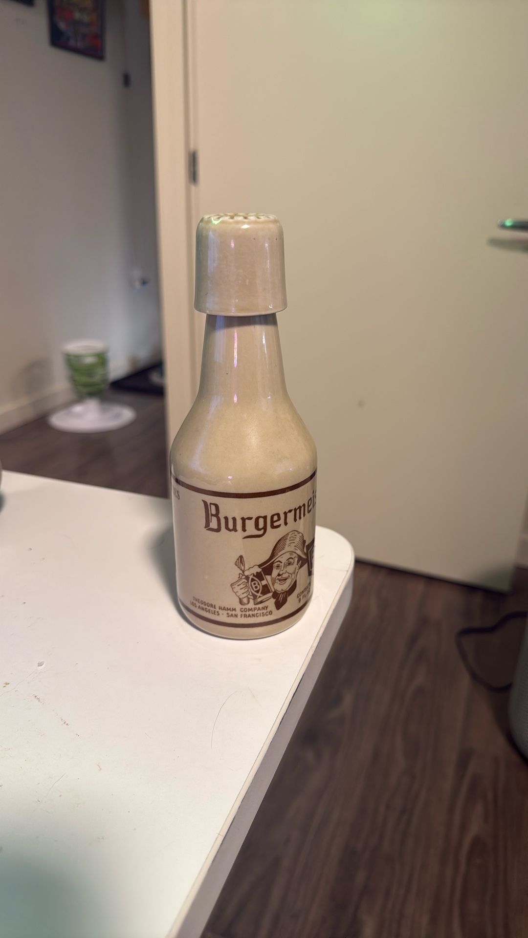 BURGERMEISTER BURGIE BEER CERAMIC BOTTLE + CAP & SHOT GLASS LOS ANGELES BRAZIL