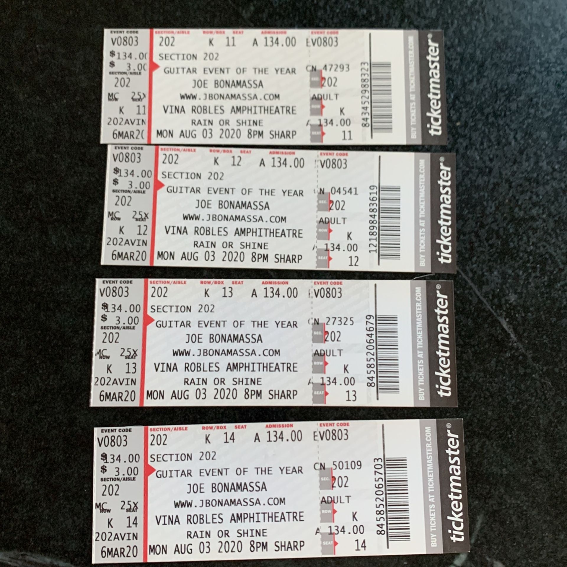 4 Joe Bonamassa Tickets Tonight Row 201