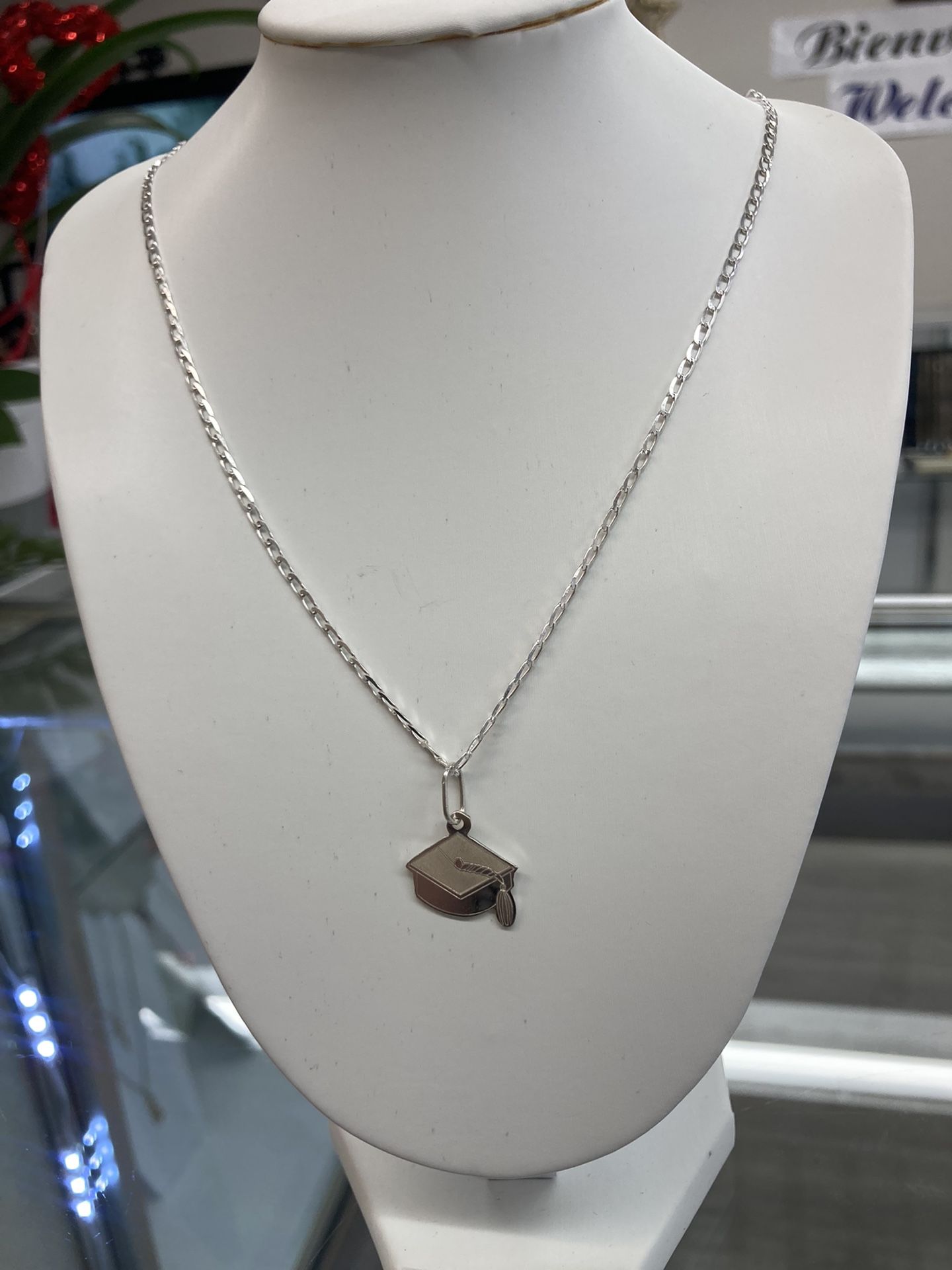 Plata925 Cadena 20” pulgadas de largo y medalla plata graduación Plata