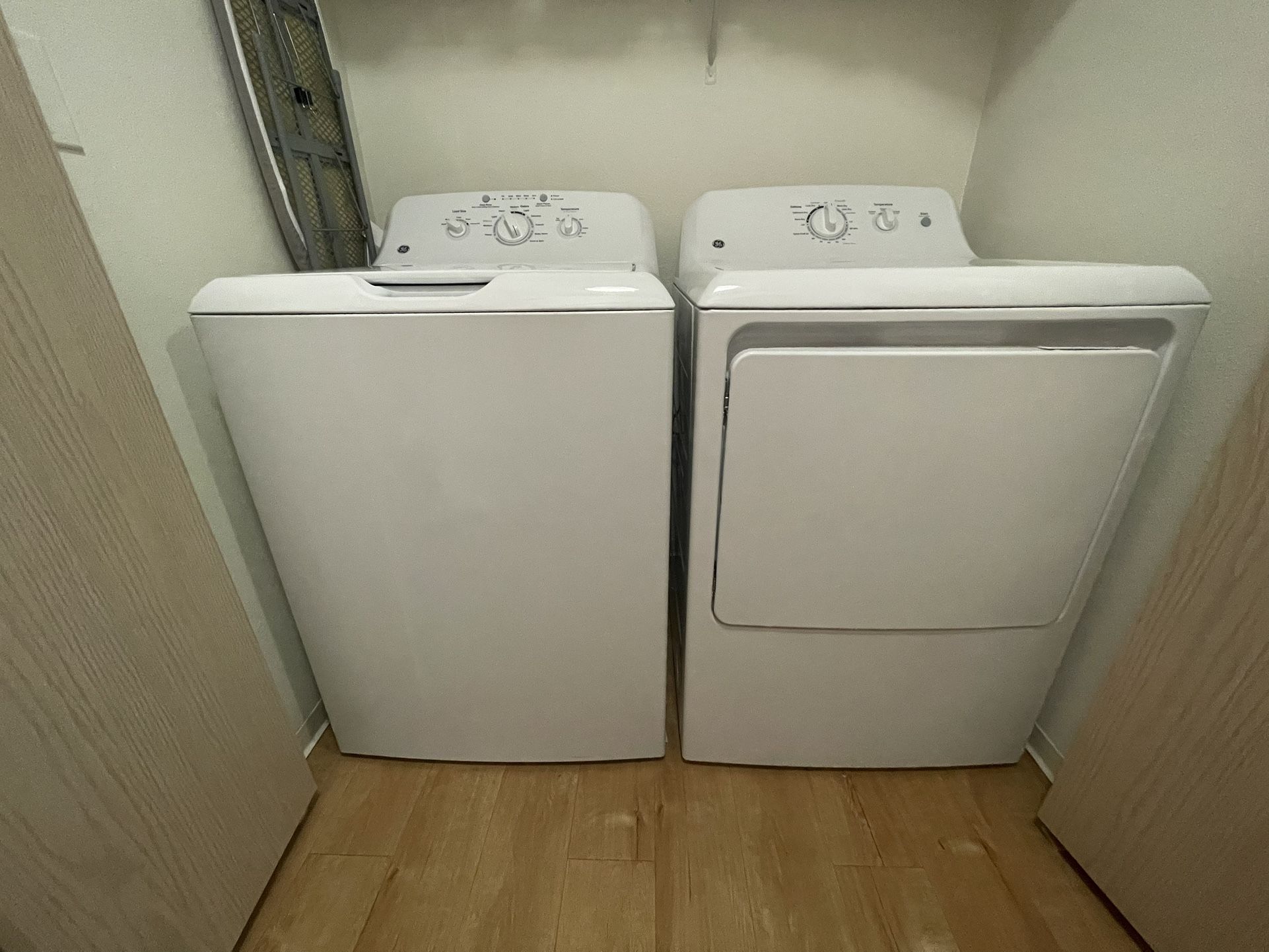GE Medium washer and dryer $400 OBO Bought brand new for $1,100 in 2022, I have an active warranty on both and will transfer over to your name upon purchase. They are both in excellent condition, I'm selling because I'm moving into a new place that has a washer and dryer. Genuinely sad to see these go but excited for them to go to someone new!