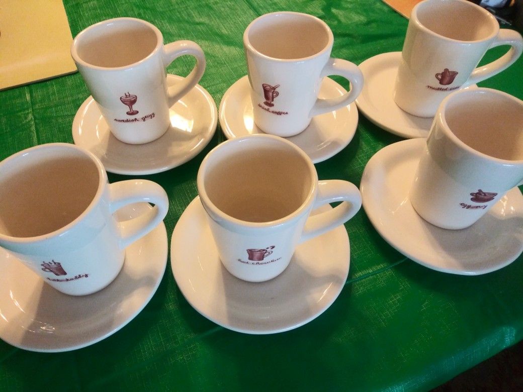 6 mugs 6 saucers Good condition. A couple if nicks but not very noticeable.