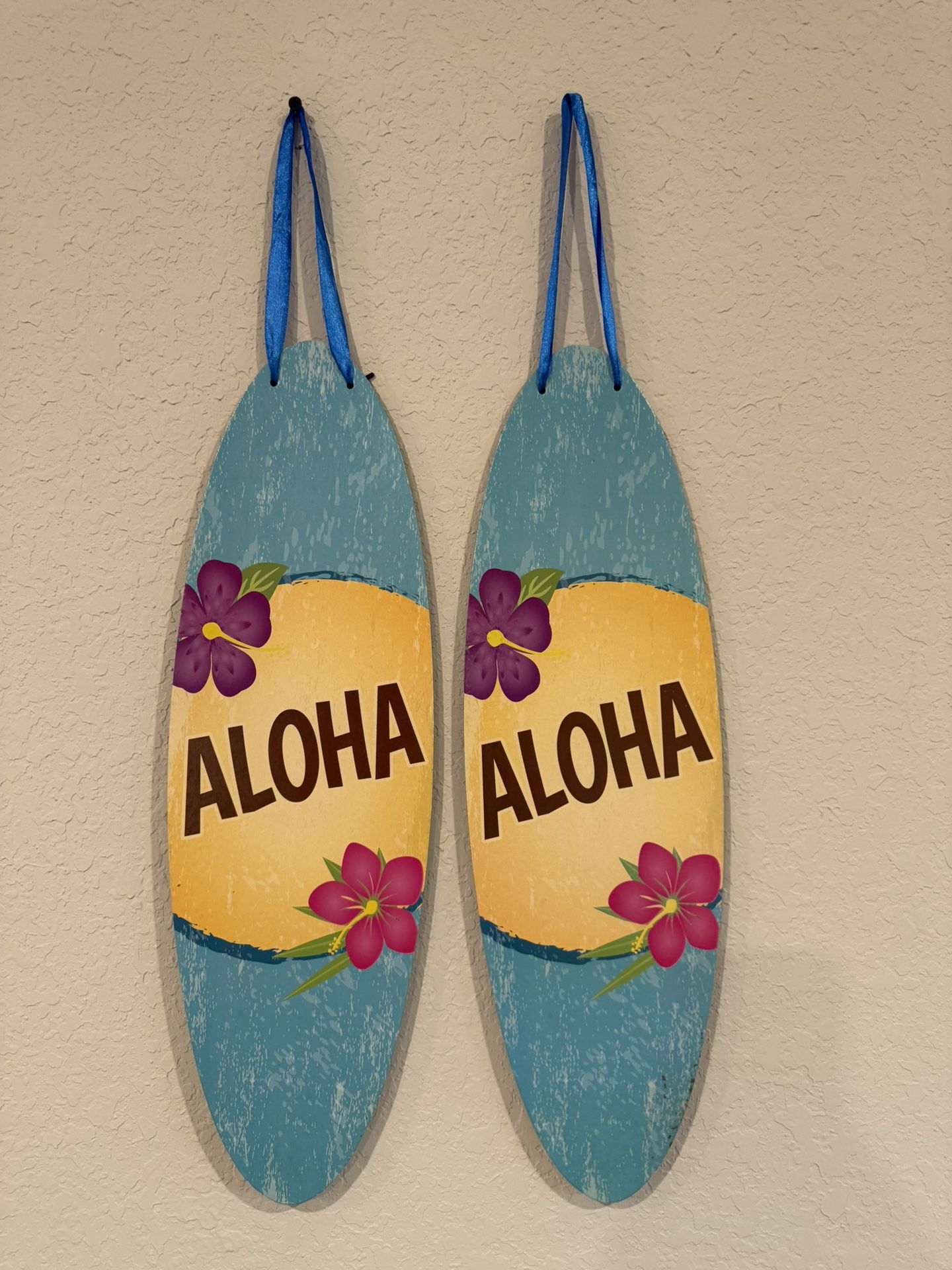Perfect condition. 2 Aloha signs. Weatherproof plastic. Fun additions to your home for summer or party / pool party. Great for fun summer addition decor. Patio friendly.