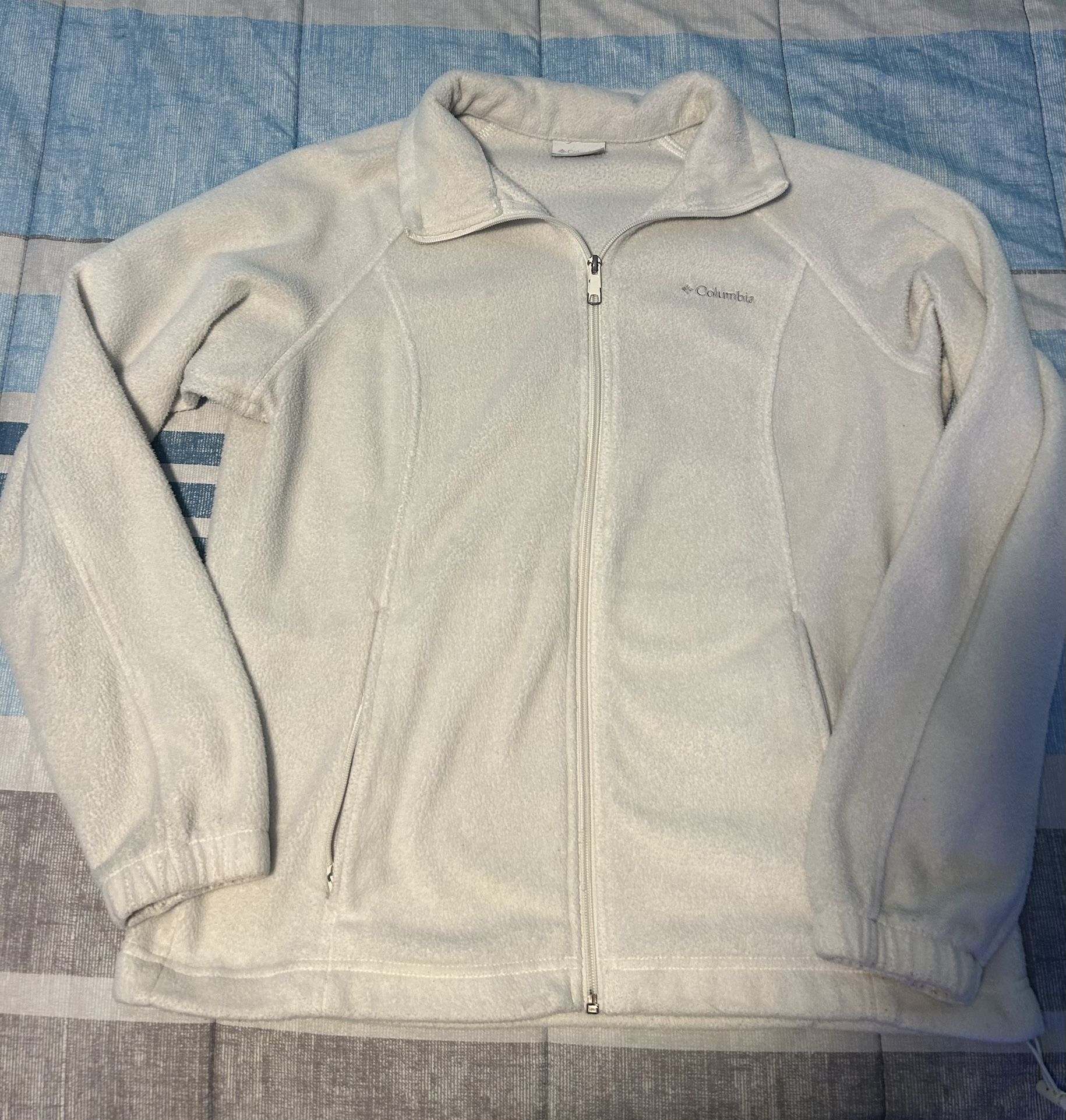 Women’s large fleece Columbia jacket in good used condition. Looks great except there is a little bit of white coming off the