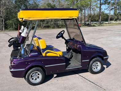 ⛳️Western Eleganté Golf Cart with lithium battery upgrade. ✅Cart is in prime condition. All lights, fan blower a/c (it’s just a fan, no cooling system), horn and radio work as should. The seats are custom Vikings logos, they are easily changed to LSU or Mardi Gras at an upholstery shop. ✅ The lithium battery upgrade is brand new and has taken this cart to the next level. It cruises at 25 mph and can do it all day on one charge. ✅Cart has full weather gear that encloses the whole cart and also covers your clubs in bad weather. 🏆Built in beer cooler behind the seat. 🏆Front truck that opens with a push button release tied to the key on/off. It locks and keeps items secured when the cart is off. 🔥Great cart, come have some fun in it!
