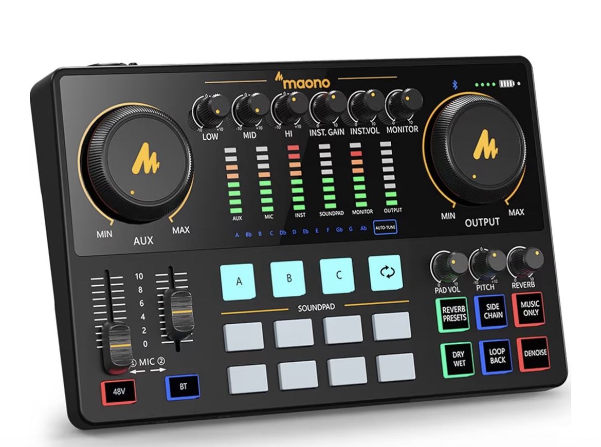 MAONO Audio Interface, MaonoCaster 10-Channel Podcast mixer with Pro-preamp, 48V Phantom Power, Bluetooth, 11 Customize sound pads for Recording, Streaming, Youtube, TikTok, PC, Guitar (AME2) NEW IN BOX MSRP: $121.74 Asking for $75 FIRM