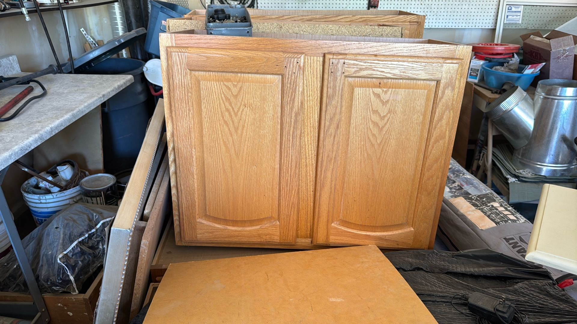 Good wood cabinets that have plenty of life for someone needing to upgrade their kitchen.