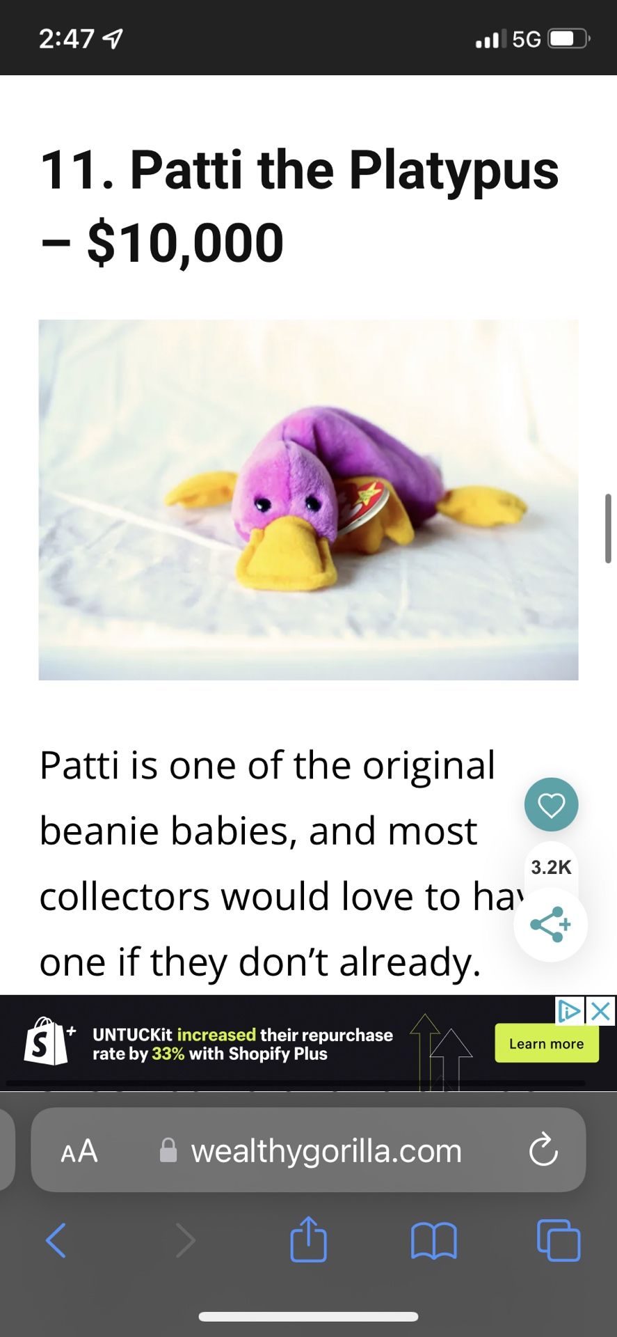 This is a really rare beanie baby last one sold for 10k at an auction asking $5000