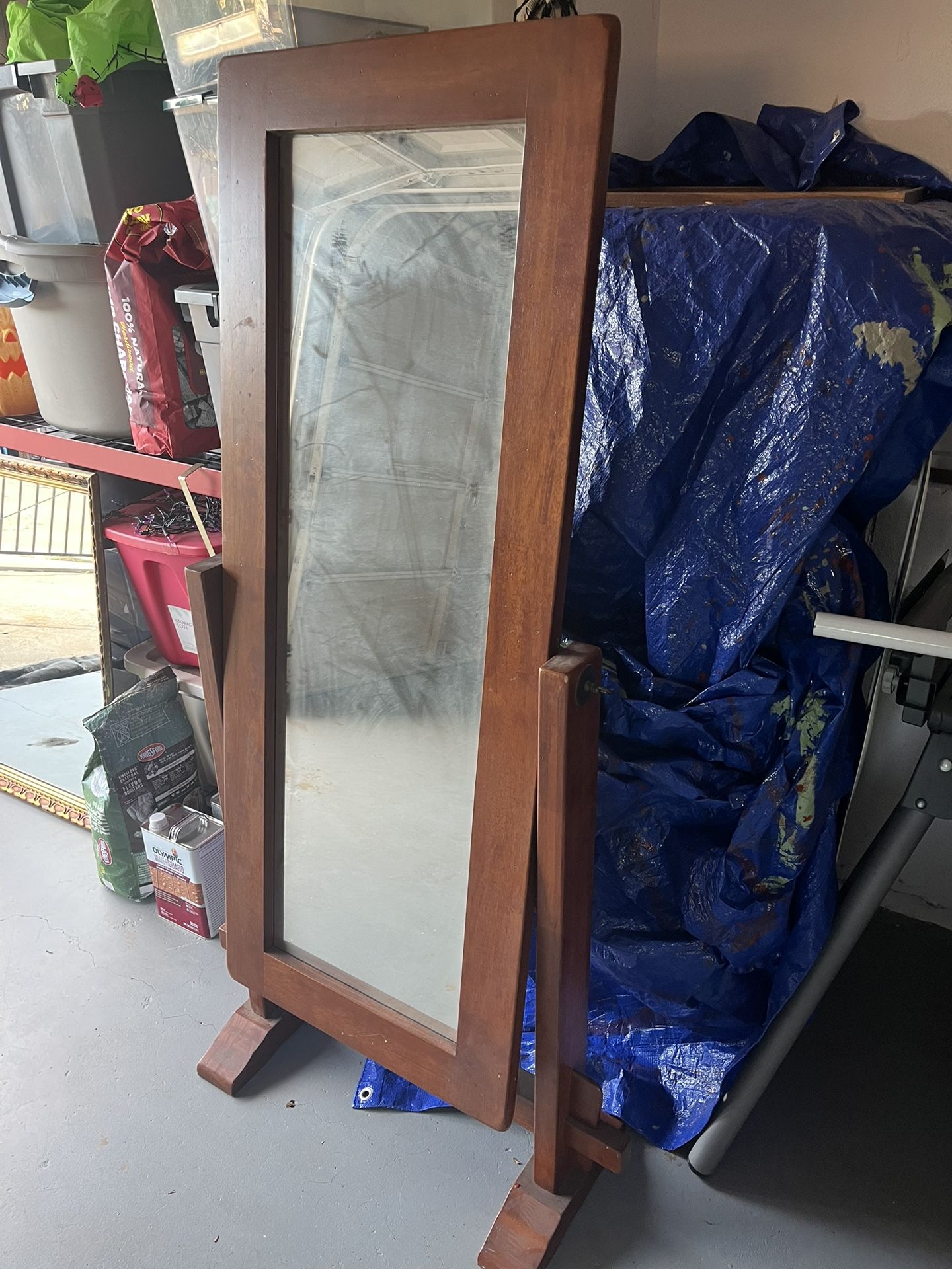 Stand alone mirror for sale real wood in great condition glass is just dirty 22inX width by 55inch height.