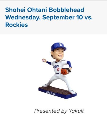 This is the last upcoming Ohtani bobblehead. I'll have 3 available. $130 each. If interested, 50% deposit is required through Zelle or Venmo. Located in Glendora or can offer shipping through USPS. ●● NO TRADES●● NO TRADES●● NO TRADES●