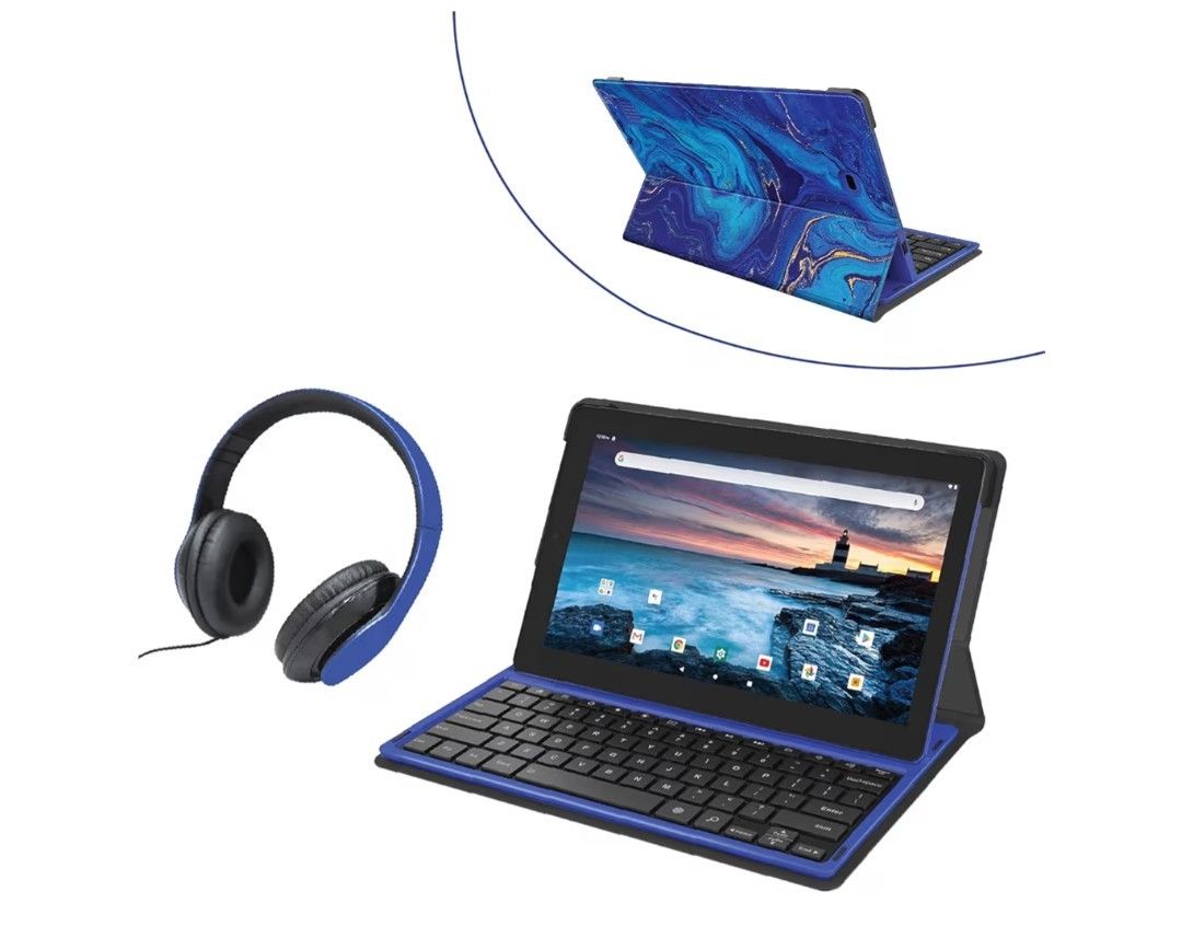 RCA 11.6" 2GB RAM 128GB Storage 2-in-1 Tablet with Keyboard Touchscreen WiFi Bluetooth and DJ Headphones (Blue Marble)