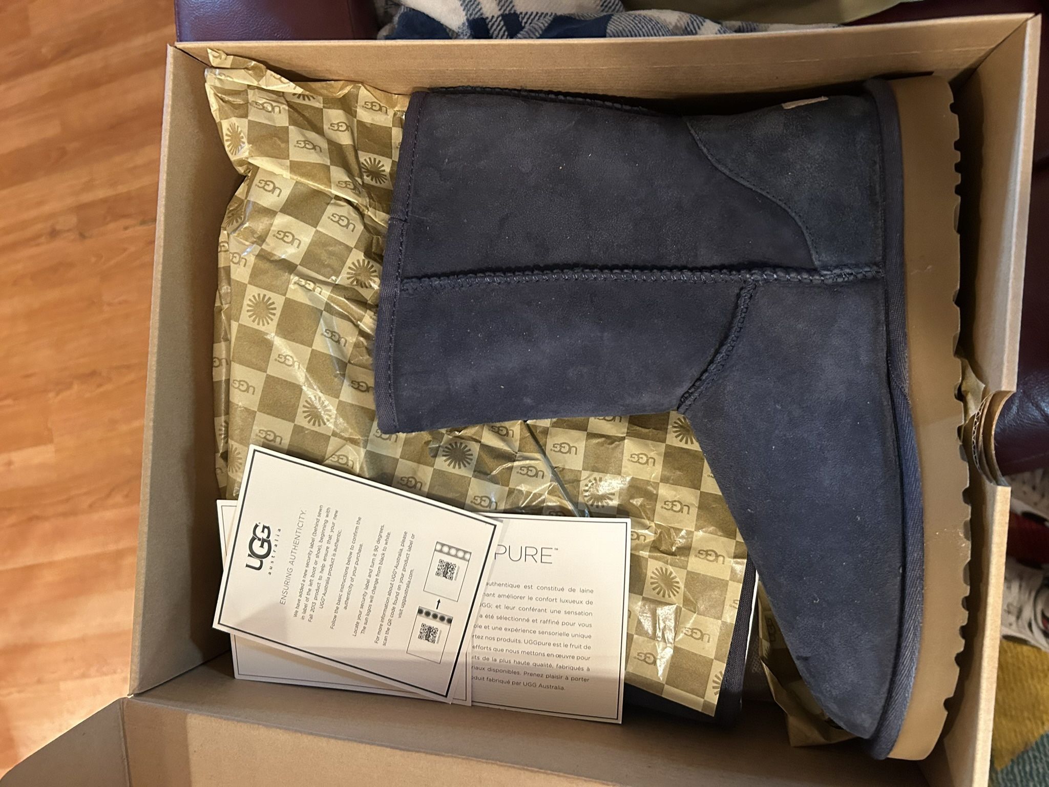 Navy Blue Women’s UGG Boots – Size 10 (Brand New w/ Authenticity Certificates) Brand new, never worn women’s UGG boots in a beautiful navy blue color. Size Women’s 10 Includes original authenticity certificates for peace of mind. ✨ Details: Women’s size 10 Navy blue Never worn / brand new Authentic UGGs with certificates included Smoke-free home Pickup or local meetup preferred. Message me if you’re interested or have questions.