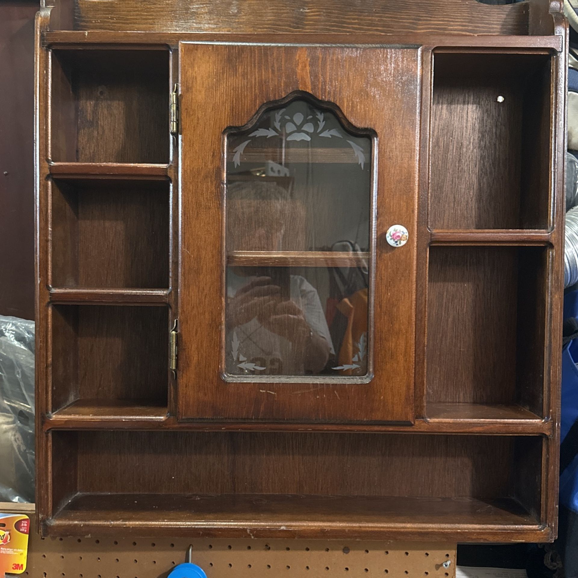 Vintage Handmade Wooden Shelf With Door