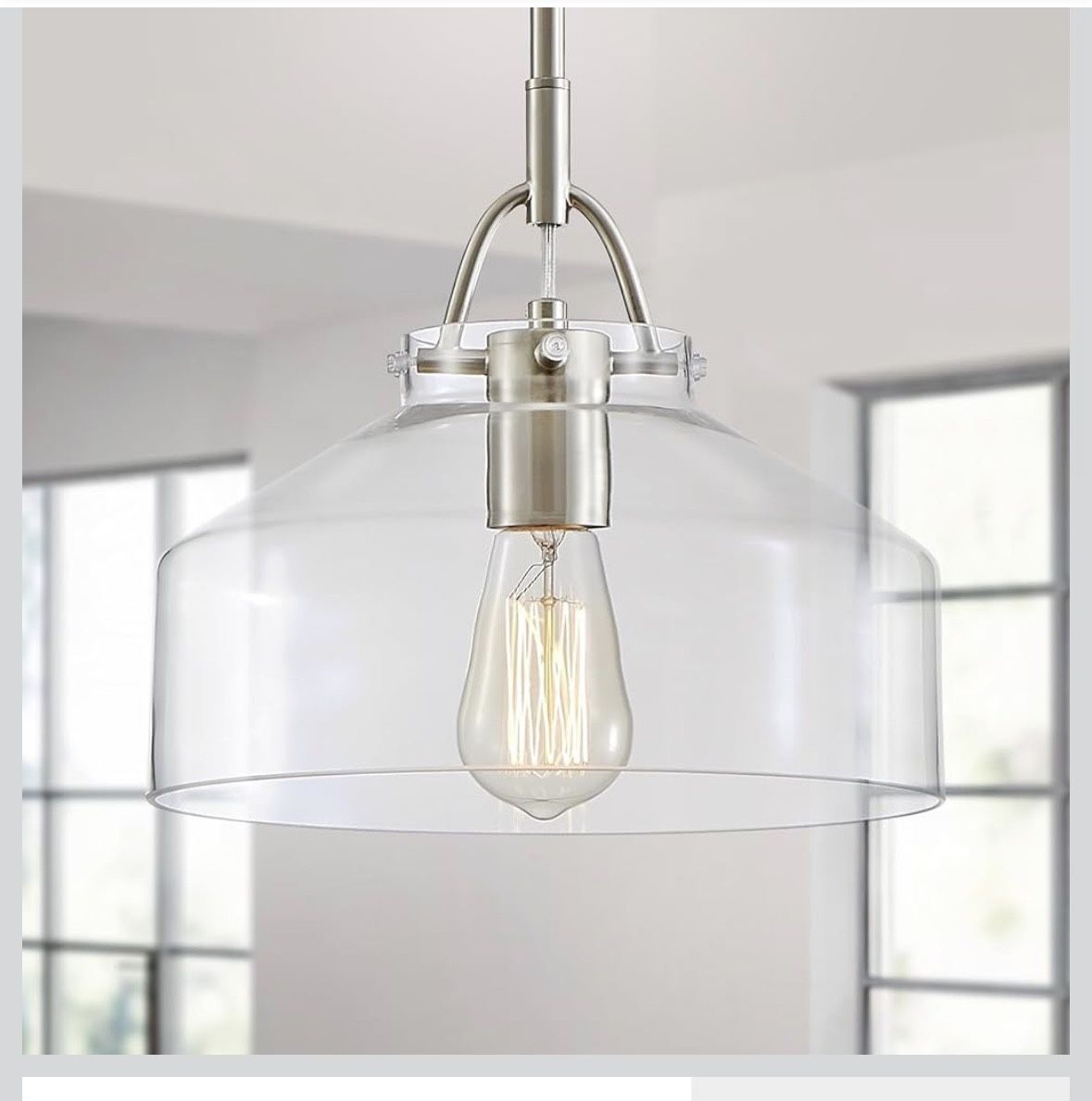 WUZUPS Chandelier Rustic Farmhouse Industrial Round Ceiling Pendant LED Light Fixture with Clear Glass Shades for Dining Room Kitchen Island Foyer Entryway, H 9.4" × W 10.6", E26 Base, Brushed Nickel
