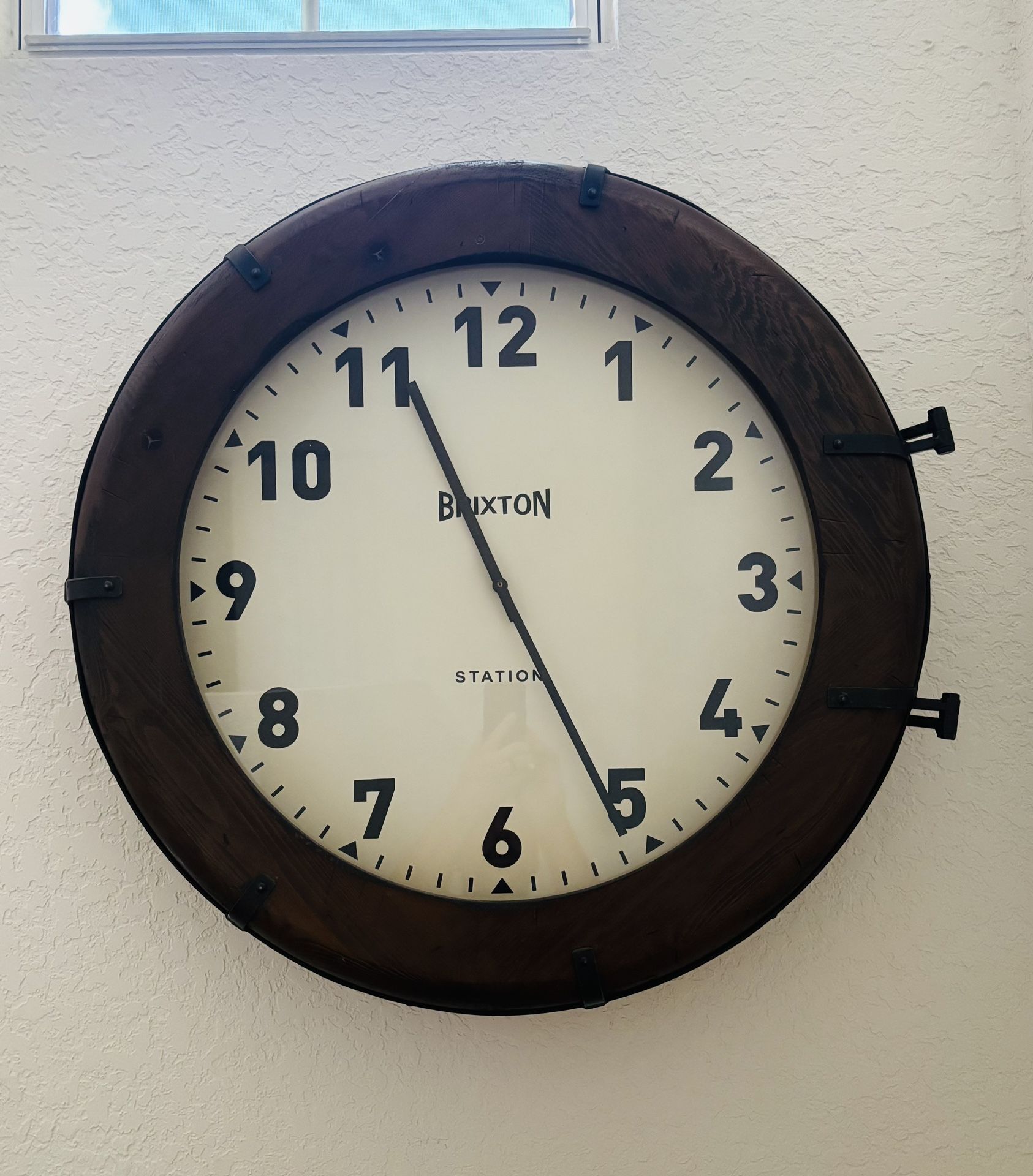 Newgate Brixton wall clock. A reproduction of a retro 1970s station clock style made of hard wood and metal. Absolutely beautiful and well made.